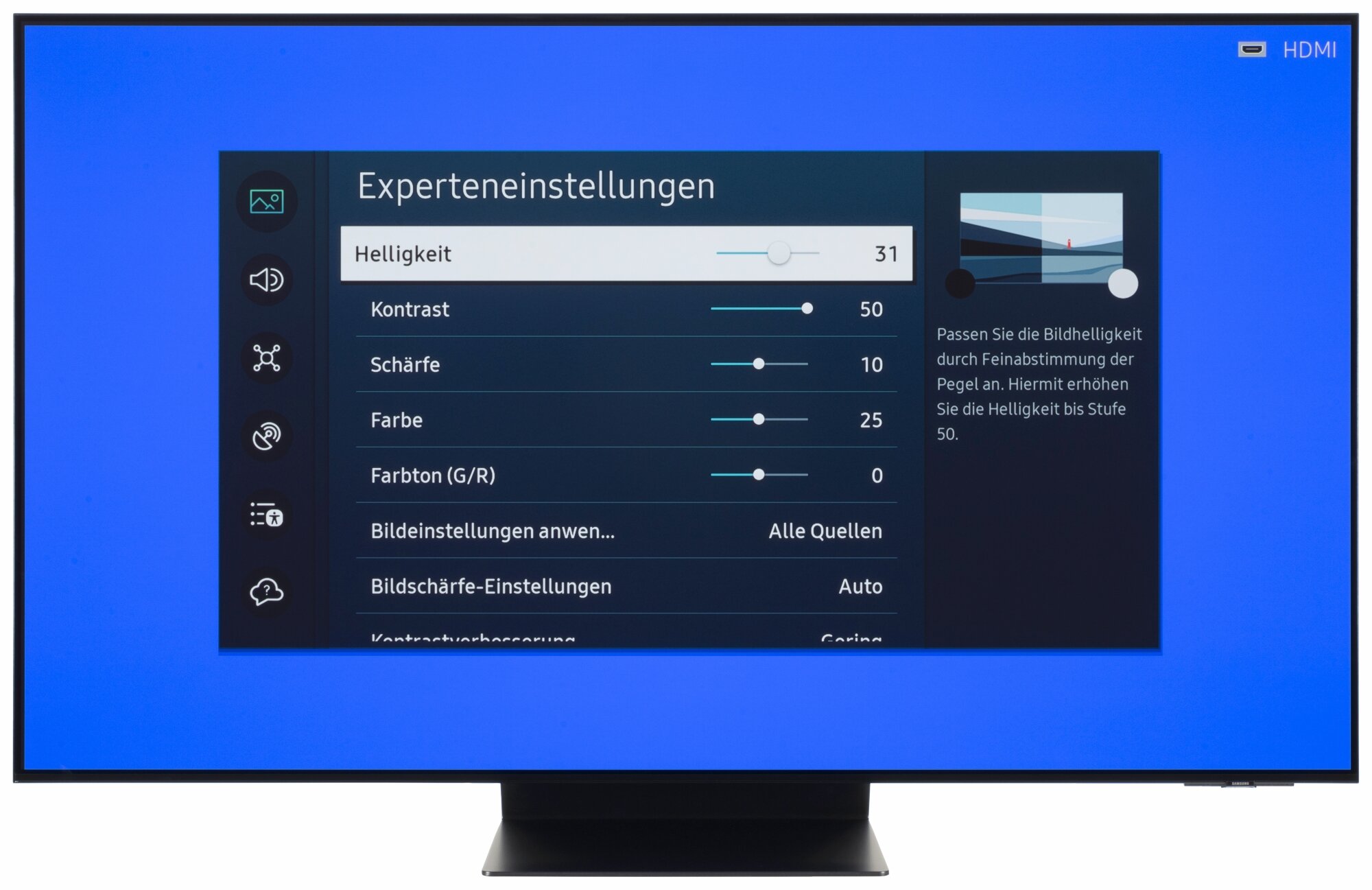 Bildqualität HD Standardeinstellung über HDMI