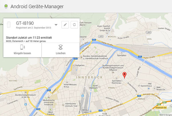 Der Gerätemanager ist für die Betriebssystemversionen ab Android 2.2 aufwärts verfügbar und installiert sich automatisch. Wer sein Handy suchen möchte, loggt sich mit seinem Google-Konto beim Gerätemanager ein. Die Ortung kann logischerweise nur funktionieren, wenn das Smartphone mit dem Internet verbunden ist. Ist diese Funktion ausgeschaltet – vorher vom Nutzer oder später vom Dieb – ist eine Ortung über den Gerätemanager nicht möglich. Wenn die Ortung funktioniert, zeigt Google den „Standort“ des Handys auf einer Google-Straßenkarte an – mit dem Hinweis, dass bei einem Diebstahl nicht auf eigene Faust danach gesucht, sondern die Polizei eingeschaltet werden sollte.