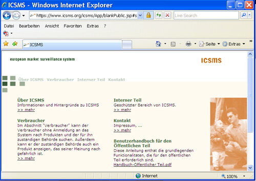 Das ICSMS ist in erster Linie eine Datenbank für die Marktüberwachung. Sie soll den Informationsaustausch zwischen den Behörden in Europa verbessern und erleichtern. Für Bürger ist das ICSMS aus zwei Gründen interessant: Sie können sich in einer Datenbank kostenlos über gefährliche Produkte informieren, und sie können unsichere Produkte direkt an die zuständigen Behörden online melden.