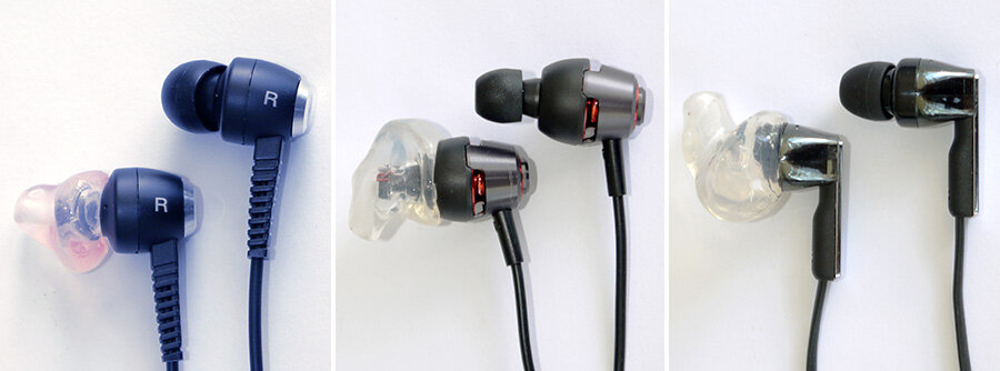 Zwei große und einen kleinen In-Ohr-Kopfhörer aus dem letzten In-Ohr-Kopfhörer-Test (test 8/2015) ließen wir von einem Hörgeräteakustiker bei zwei Testpersonen einpassen. Kostenpunkt: rund 85 Euro pro Ohrhörer-Paar. Wartezeit bis zur Lieferung: drei Wochen. Die in sogenannte Otoplastiken eingegossenen Kopfhörer sehen zwar etwas nach Sanitätshaus aus, sitzen dafür aber perfekt und ohne Druck im Ohrkanal. Das ist vor allem beim Sport ein Gewinn. Wenn man auf der Seite liegt, drückt es allerdings arg, denn nun ragen die In-Ear-Kopfhörer weiter aus den Ohrmuscheln heraus als mit einem Standard-Ohrpolster.