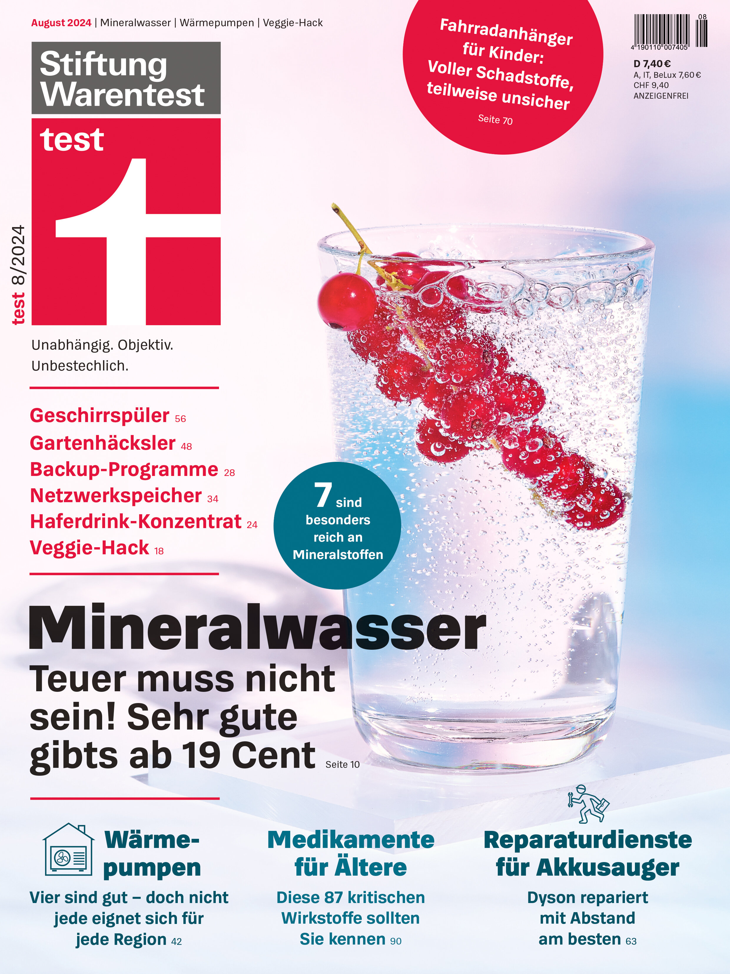 Die Verwendung von Bild- und Videomaterial ist ausschließlich bei redaktioneller Berichterstattung über das jeweilige Thema zulässig, soweit unsere rechtlichen Hinweise beachtet werden. Dann ist die Verwendung unter Angabe der Quelle „Stiftung Warentest“ honorarfrei. Bei Online-Verwendung muss auf den zugehörigen Inhalt auf test.de verlinkt werden. Eine werbliche oder gewerbliche Nutzung ist nicht gestattet.