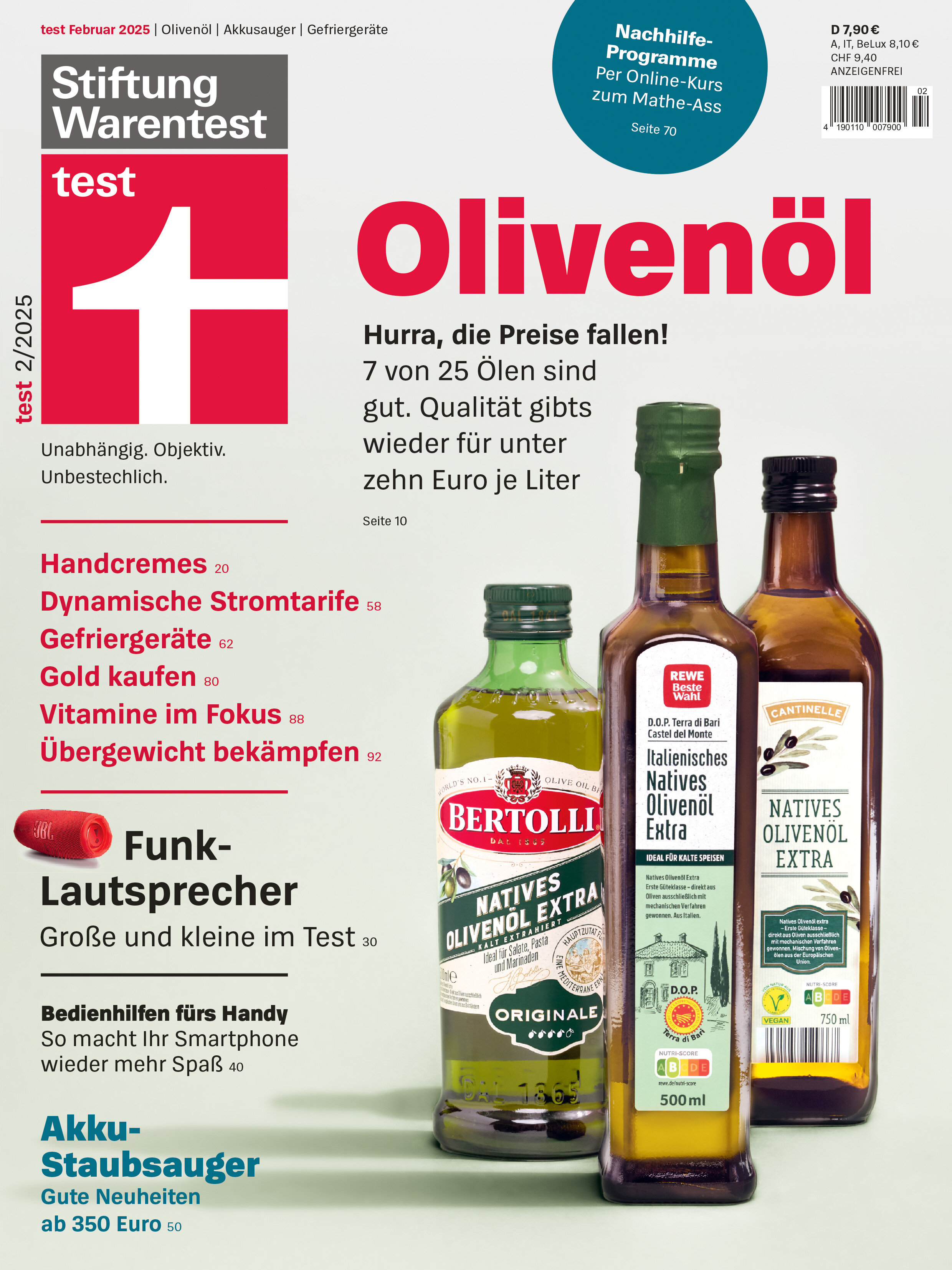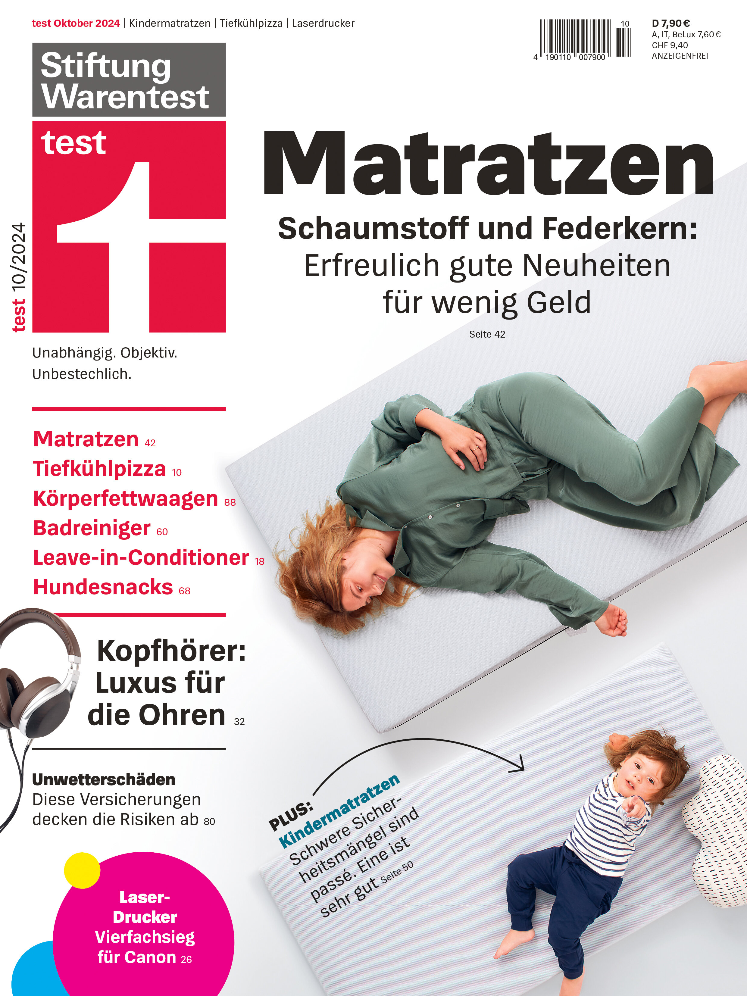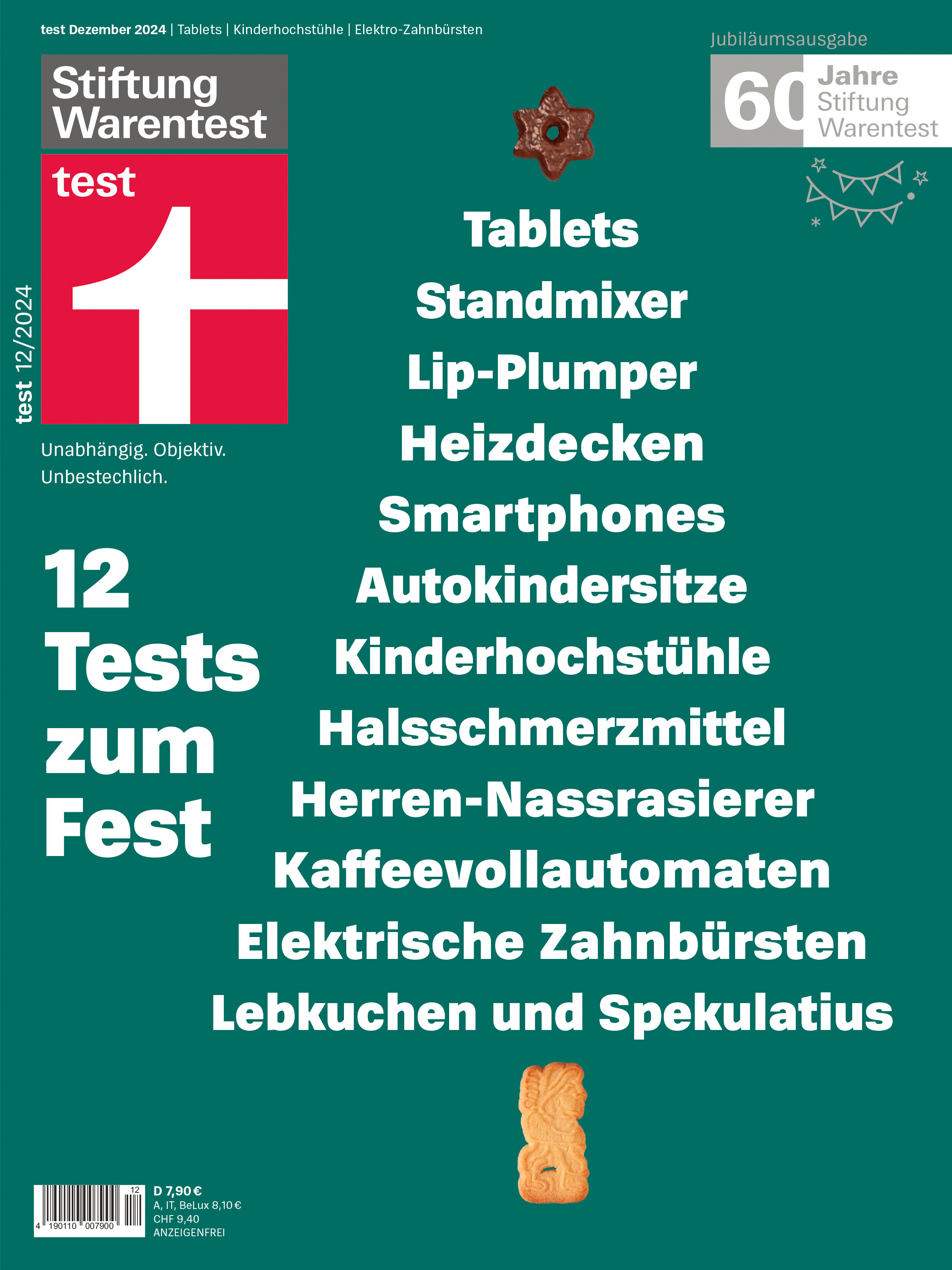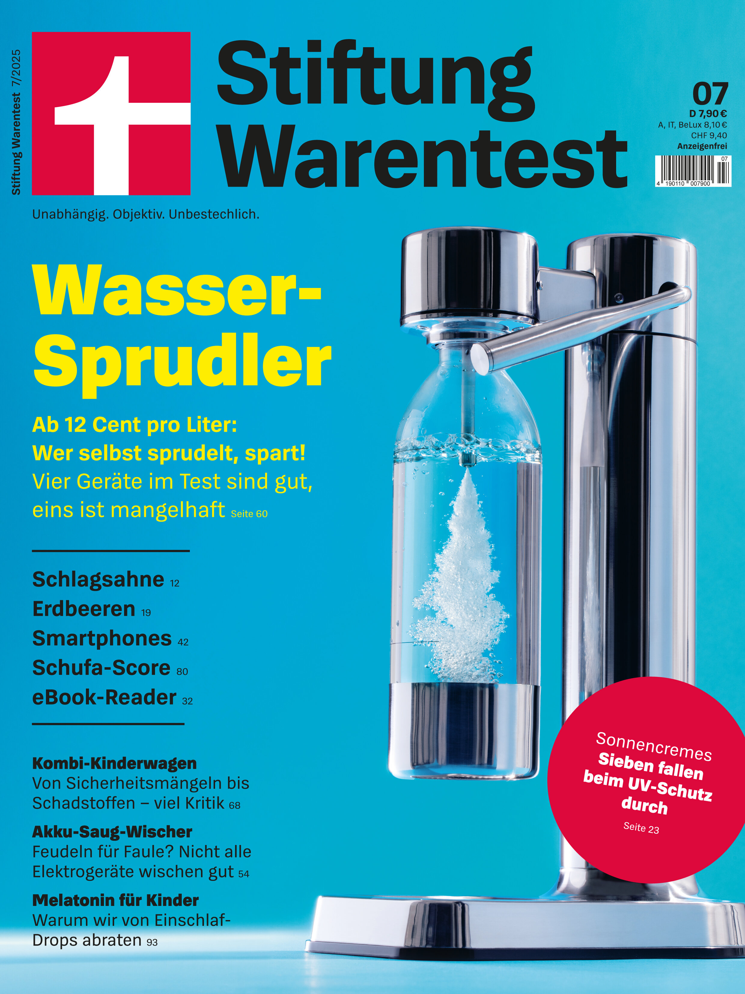 Die Verwendung von Bild- und Videomaterial ist ausschließlich bei redaktioneller Berichterstattung über das jeweilige Thema zulässig, soweit unsere rechtlichen Hinweise beachtet werden. Dann ist die Verwendung unter Angabe der Quelle „Stiftung Warentest“ honorarfrei. Bei Online-Verwendung muss auf den zugehörigen Inhalt auf test.de verlinkt werden. Eine werbliche oder gewerbliche Nutzung ist nicht gestattet.