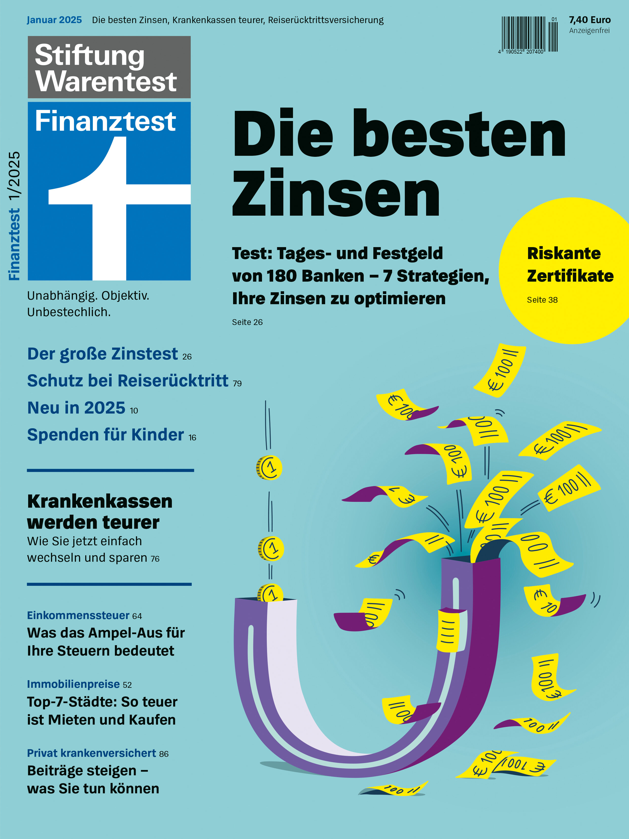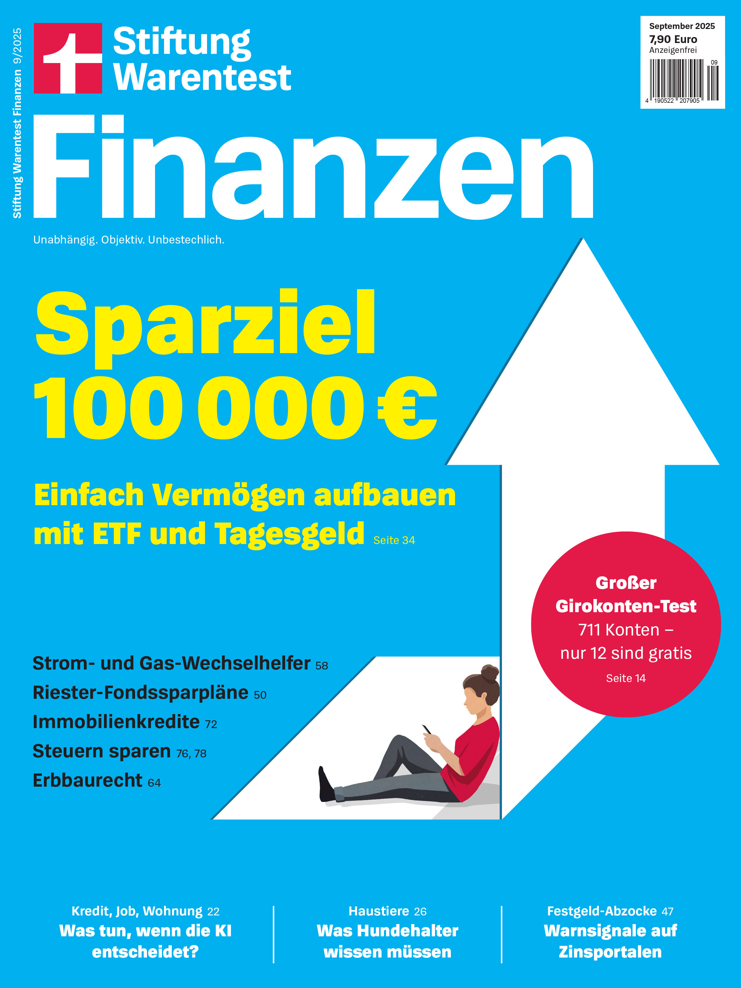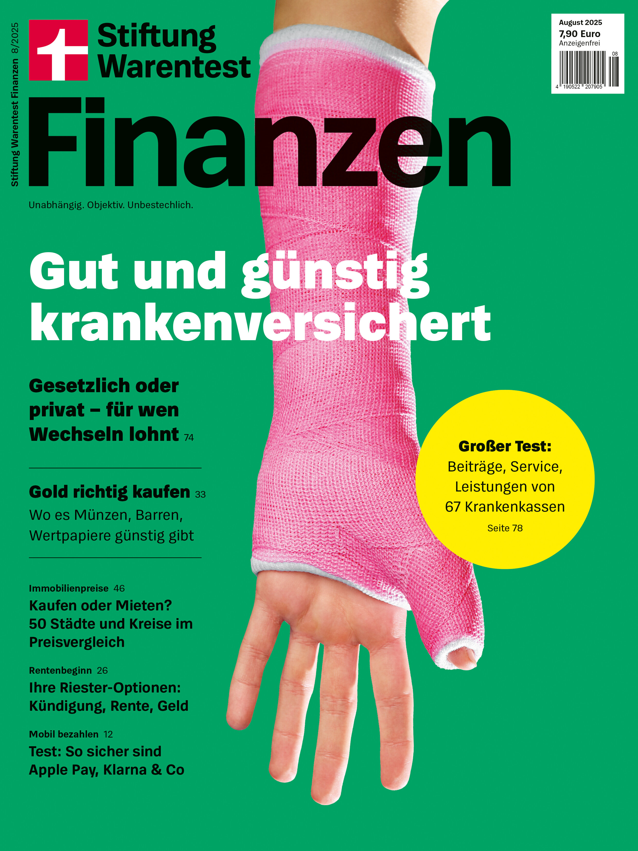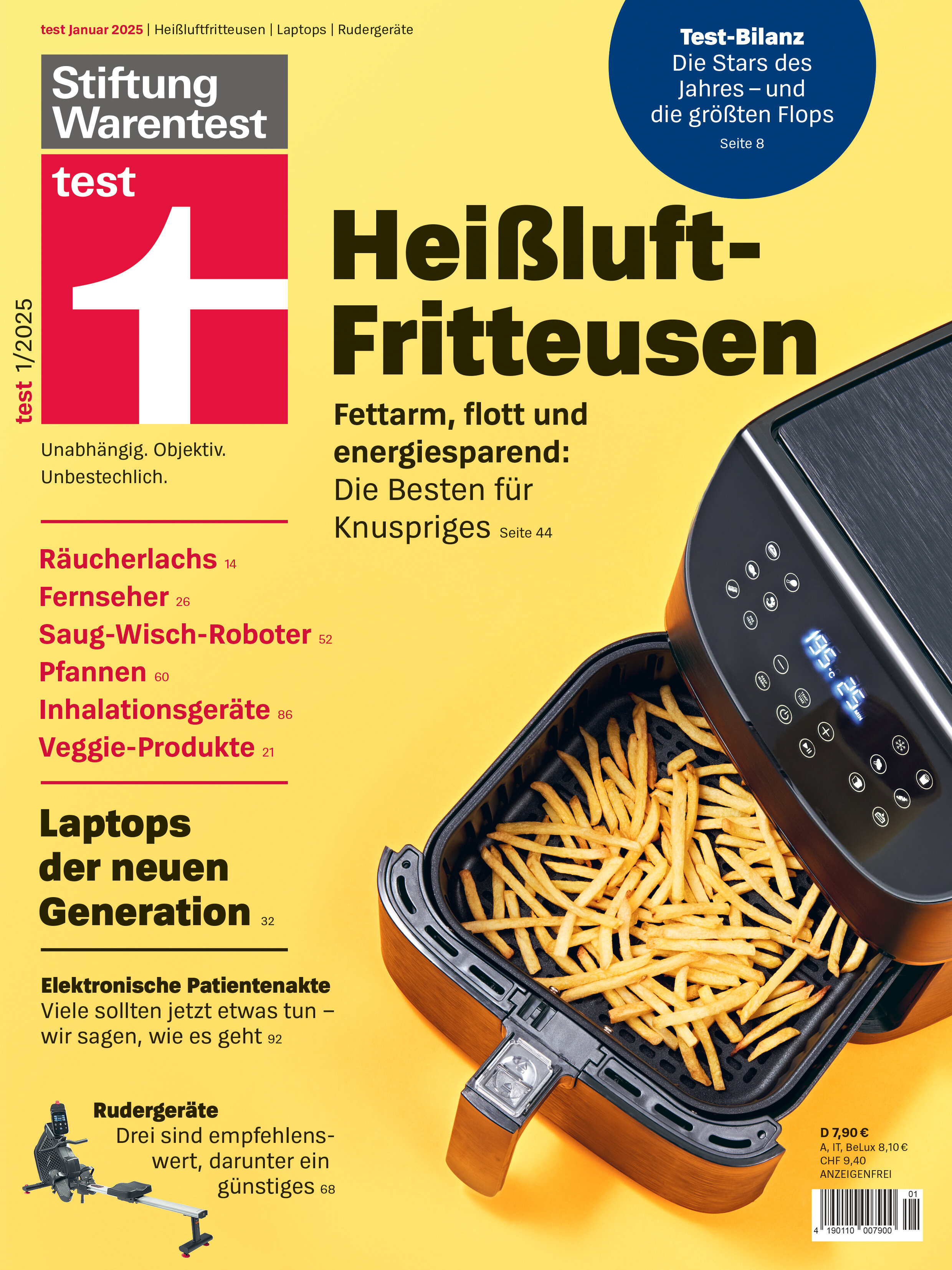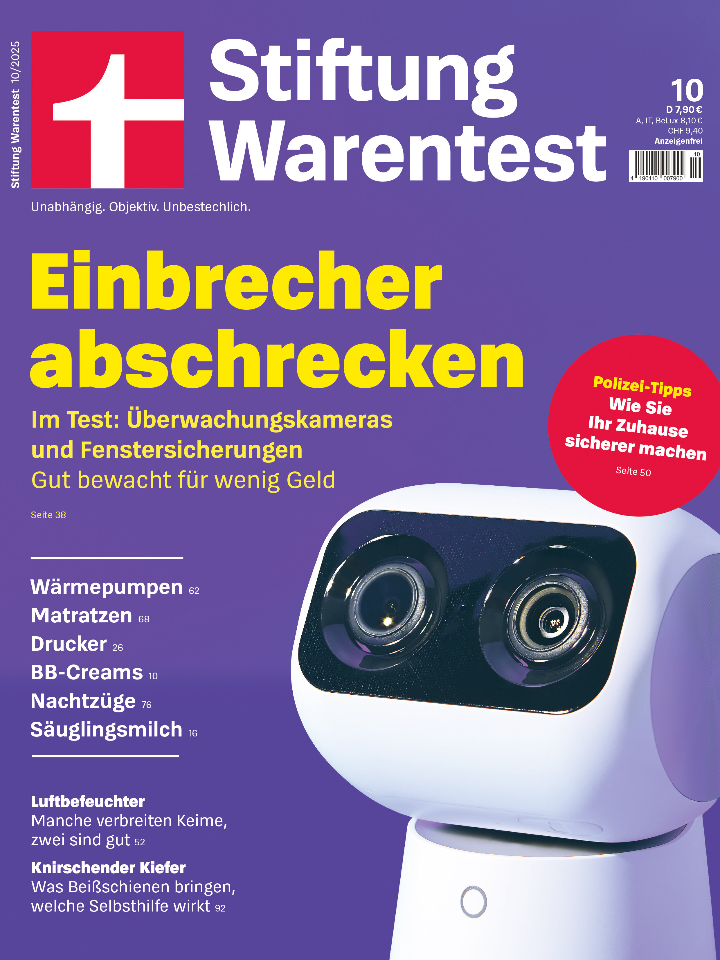 Die Verwendung von Bild- und Videomaterial ist ausschließlich bei redaktioneller Berichterstattung über das jeweilige Thema zulässig, soweit unsere rechtlichen Hinweise beachtet werden. Dann ist die Verwendung unter Angabe der Quelle „Stiftung Warentest“ honorarfrei. Bei Online-Verwendung muss auf den zugehörigen Inhalt auf test.de verlinkt werden. Eine werbliche oder gewerbliche Nutzung ist nicht gestattet.