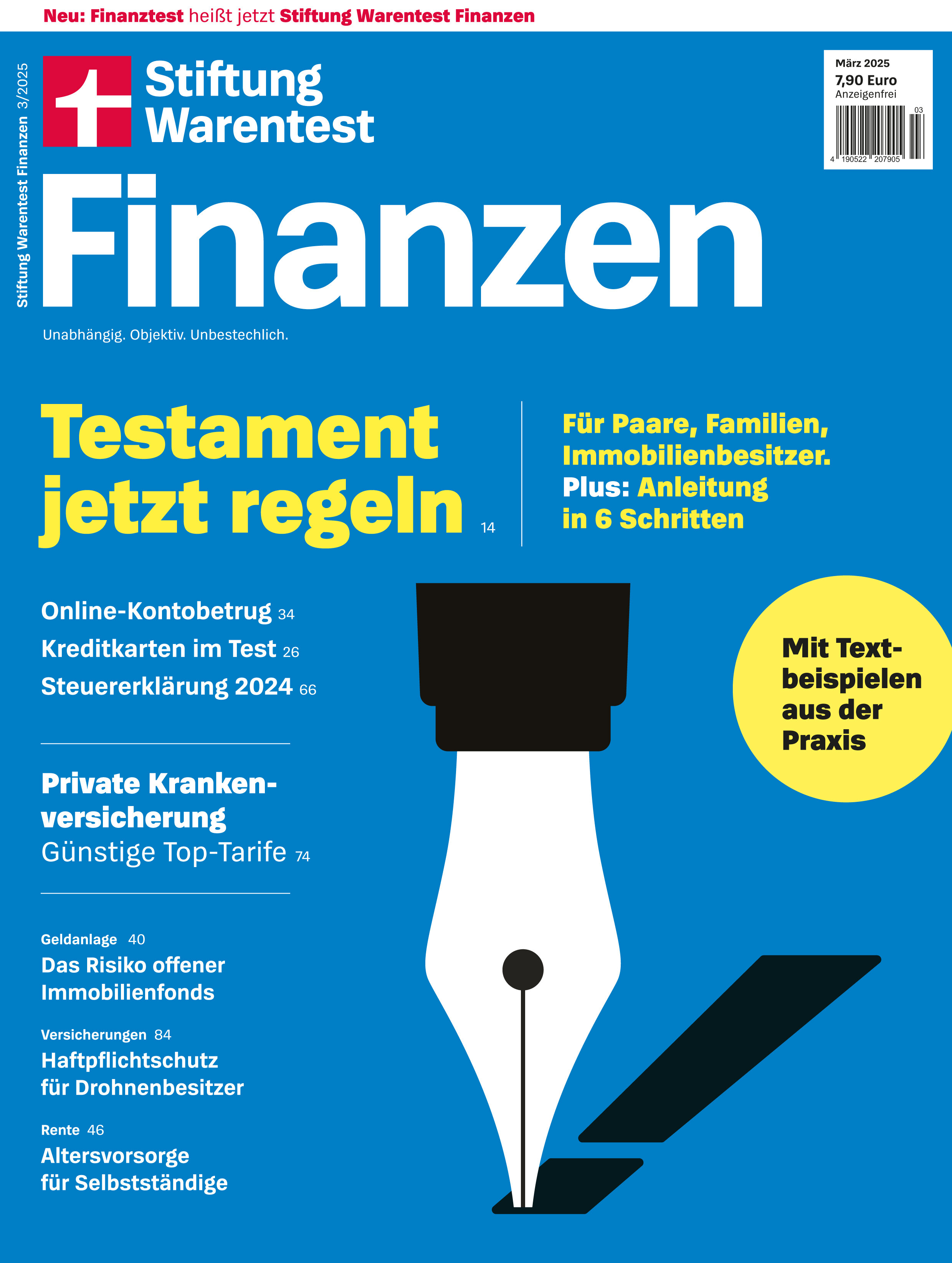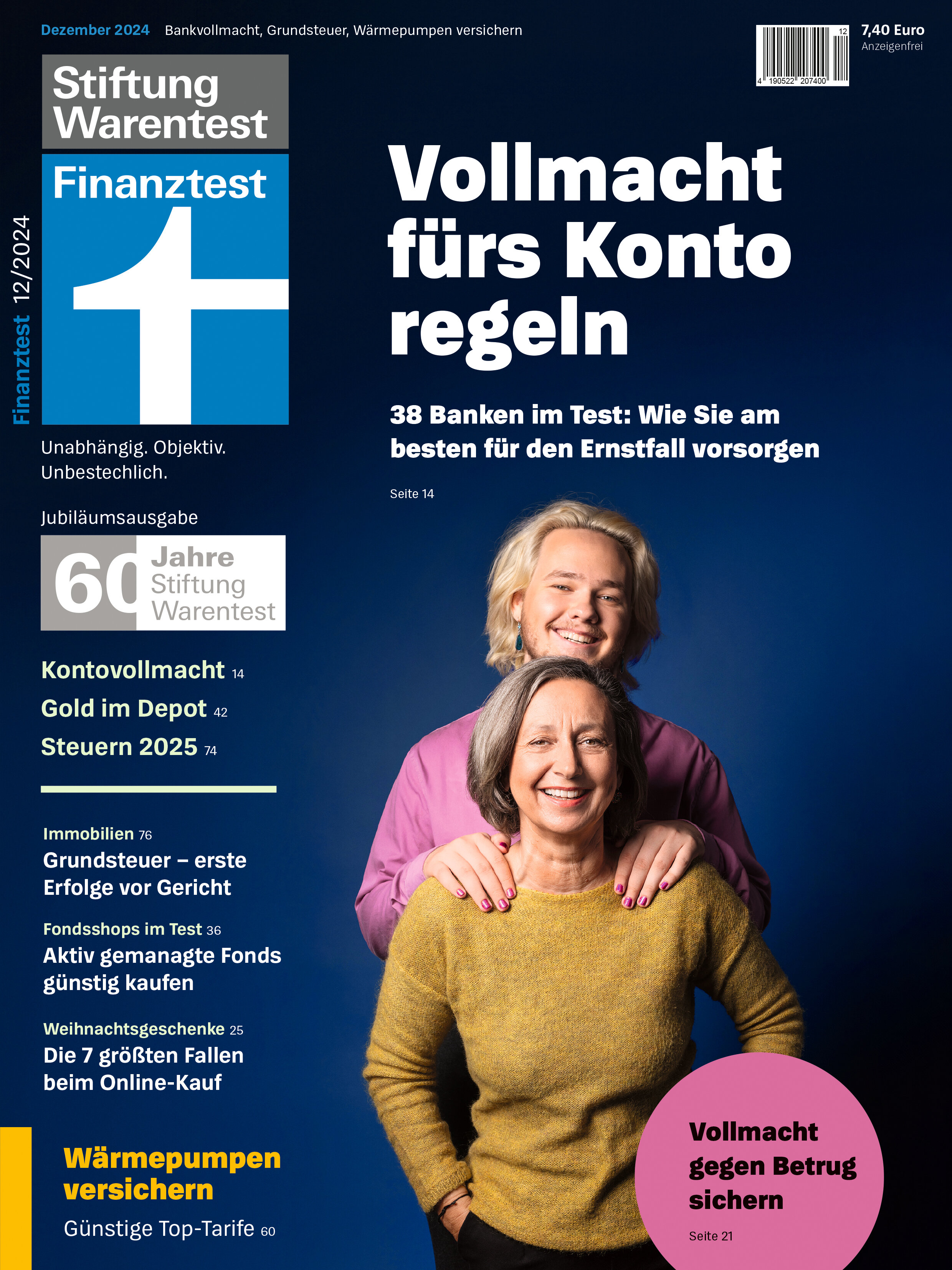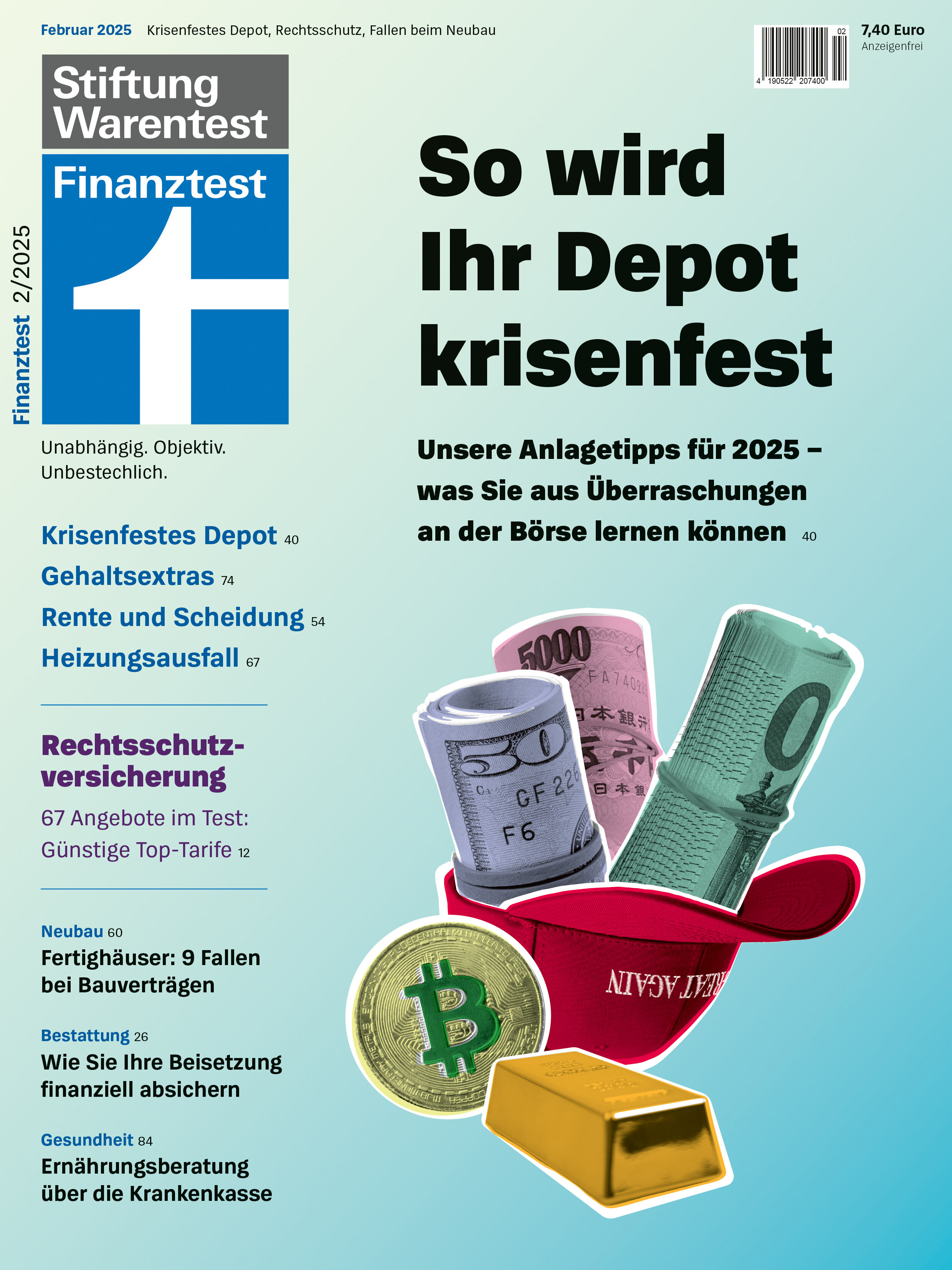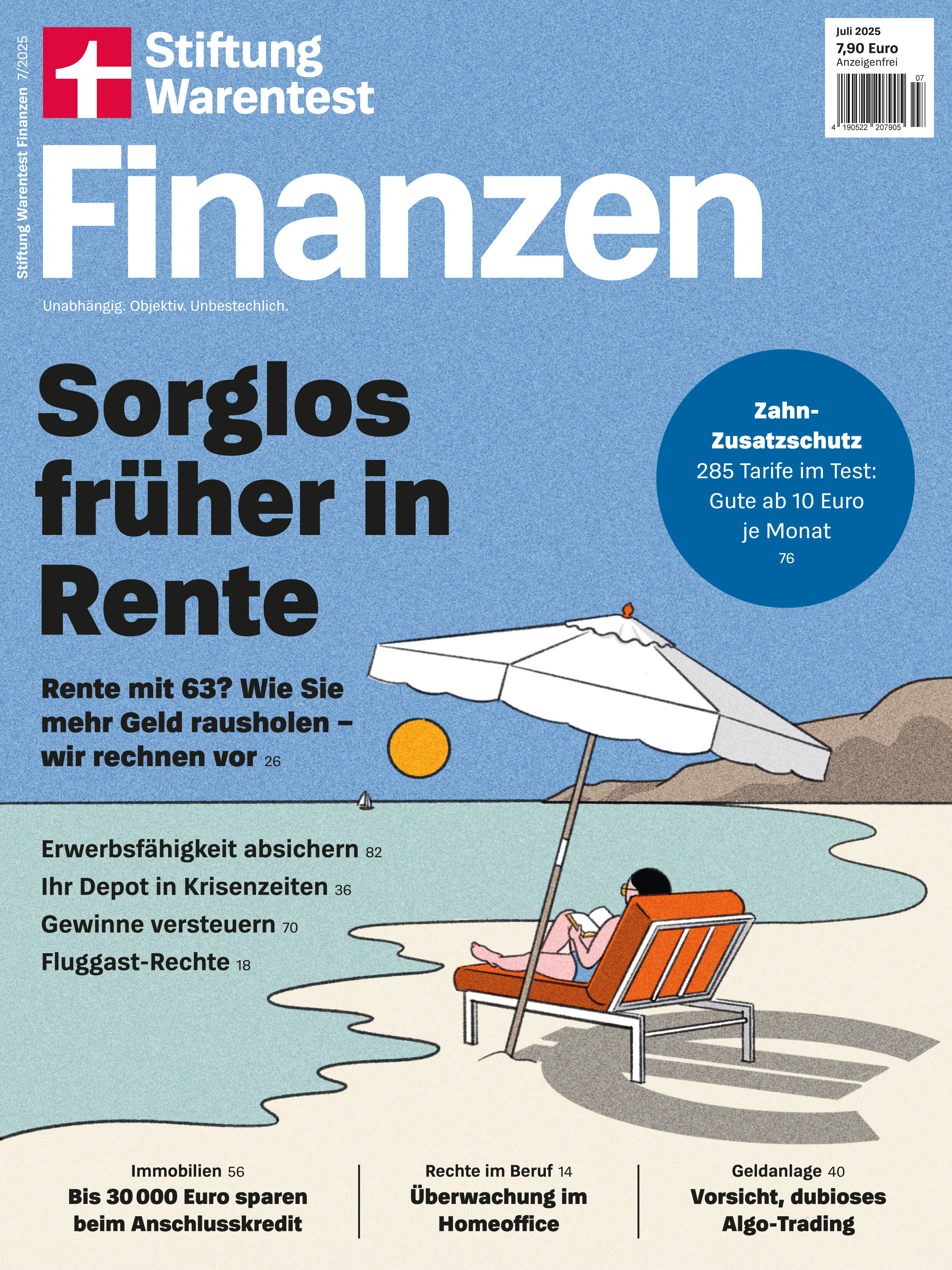 Die Verwendung von Bild- und Videomaterial ist ausschließlich bei redaktioneller Berichterstattung über das jeweilige Thema zulässig, soweit unsere rechtlichen Hinweise beachtet werden. Dann ist die Verwendung unter Angabe der Quelle „Stiftung Warentest“ honorarfrei. Bei Online-Verwendung muss auf den zugehörigen Inhalt auf test.de verlinkt werden. Eine werbliche oder gewerbliche Nutzung ist nicht gestattet.