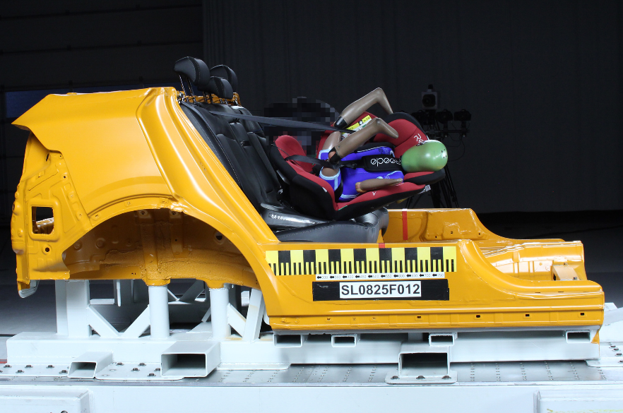 Mangelhaft beim Crash-Test in rückwärtsgerichteter Position: Die Kindersitze Chipolino Olympus i-Size und Reecle 360 (ZA-10 i-Size) versagen beim Frontalaufprall, einem simulierten Zusammenstoß von zwei Fahrzeugen mit jeweils 50 Kilometern pro Stunde.