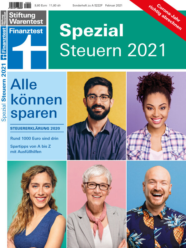 Das Finanztest Spezial hat 128 Seiten und ist für 9,80 Euro ab 23. Januar 2021 im Handel erhältlich oder kann online bestellt werden unter www.test.de/steuerheft.