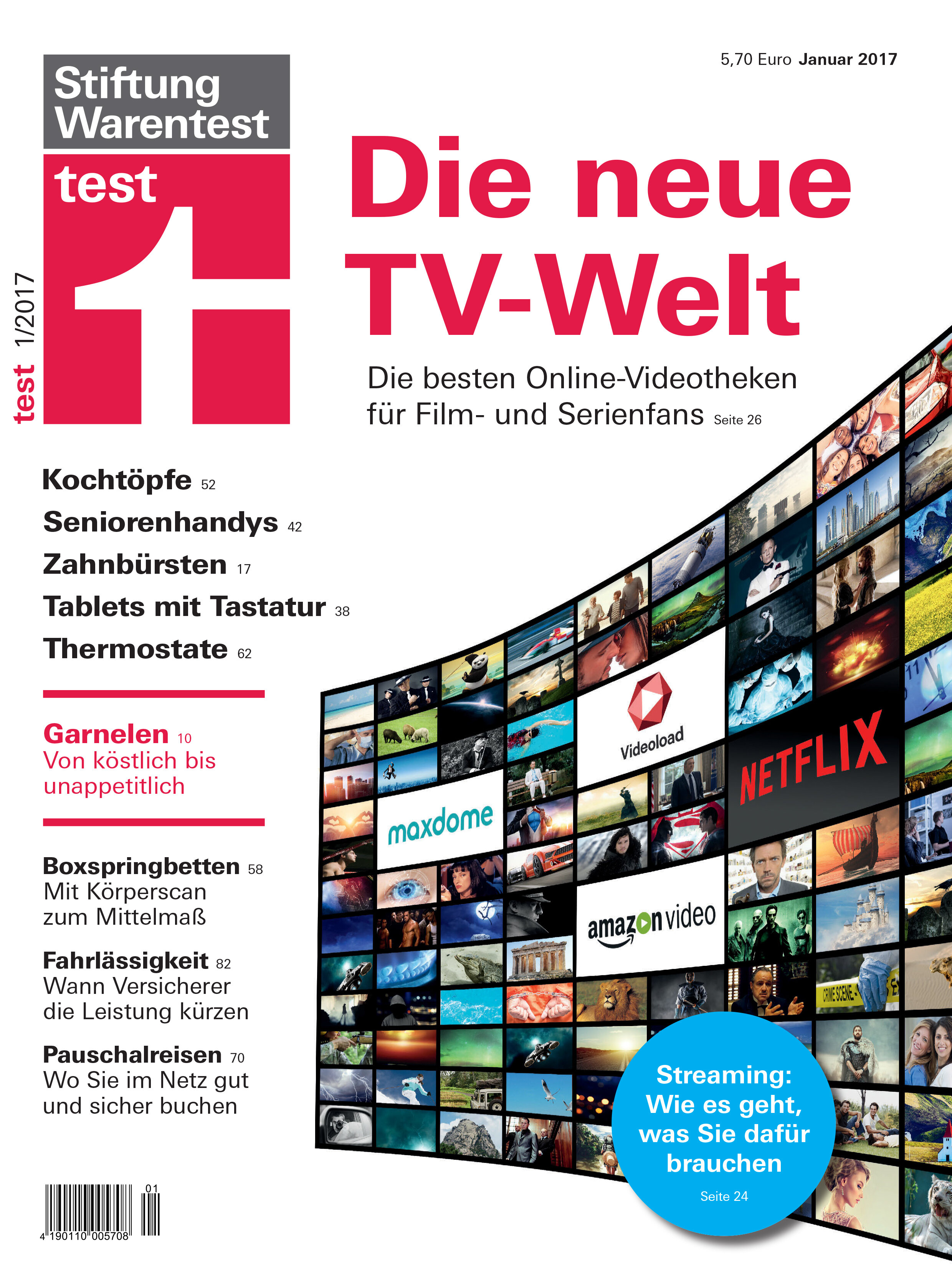 Die ausführlichen Tests erscheinen in der Januar-Ausgabe der Zeitschrift test (ab 22.12.2016 am Kiosk) und sind bereits unter www.test.de/online-videotheken und www.test.de/streaming abrufbar.